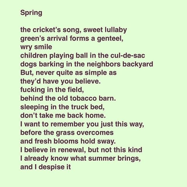 Spring . . . . . #spring #writingprompts #globalpoetcult #gpoets #gvillagepoetry #instapoem #instapoet #instapoetry #packpoetry #poem #poems #poet #poetrycommunity #poetryisnotdead #poetrypunch #poets #poetsofig #poetsofinstagram #spilledink #spokenword #thehallofpoetry #wordporn #writer #writers #writerscommunity #writersofig #writersofinstagram #writing #writingcommunity