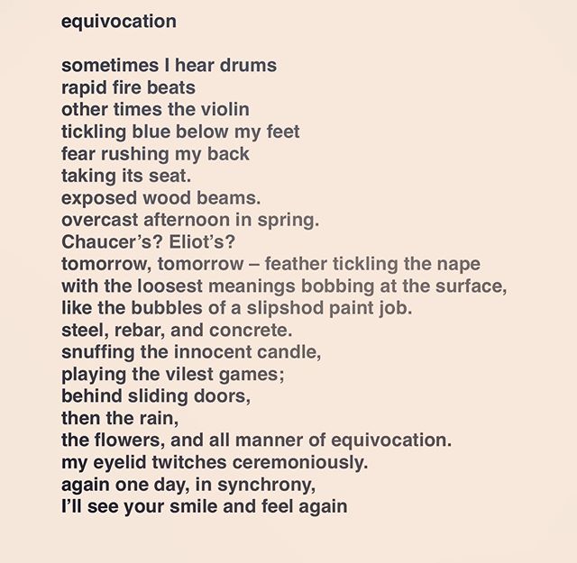equivocation . . . . . #equivocation #spring #wood #concrete #chaucer #eliot #tomorrow #rain #fear #writerscommunity #spokenword #poets #writing #poetsofig #poems #instapoem #writers #writersofig #wordporn #writersofinstagram #instapoetry #writingcommunity #spilledink #instapoet #poetryisnotdead #poetsofinstagram #poetrycommunity