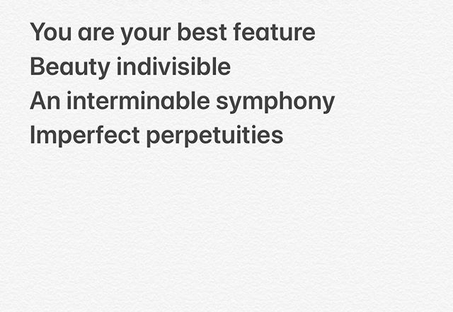 Perfect imperfection. . . . . . You are your best feature Beauty indivisible An interminable symphony Imperfect perpetuities . #poem #poet #poetsofinstagram #writersofinstagram #writing #poetsofig #writer #poetrycommunity #poems #wordporn #writersofig #words #spilledink #instapoet #poets #creativewriting #instapoem #writers #writerscommunity #instapoetry #writingcommunity #spokenword #poetryisnotdead #perfectimperfection #bestfeature #indivisible View on Instagram https://ift.tt/2KTjlBA