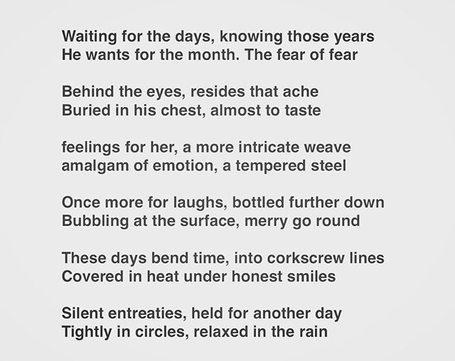 Waiting . . . . . Waiting for the days, knowing those years He wants for the month. The fear of fear Behind the eyes, resides that ache Buried in his chest, almost to taste feelings for her, a more intricate weave amalgam of emotion, a tempered steel Once more for laughs, bottled further down Bubbling at the surface, merry go round These days bend time, into corkscrew lines Covered in heat under honest smiles Silent entreaties, held for another day Tightly in circles, relaxed in the rain . #poem #poet #poetsofinstagram #writersofinstagram #writing #poetsofig #writer #poetrycommunity #poems #wordporn #writersofig #words #spilledink #instapoet #poets #creativewriting #instapoem #writers #writerscommunity #instapoetry #writingcommunity #spokenword #poetryisnotdead #rain #waiting #feelings #steel #corkscrew View on Instagram https://ift.tt/2TNUp1j