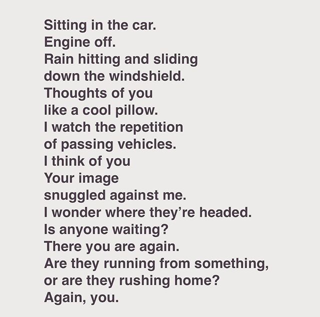 In the car . . . . . Sitting in the car. Engine off. Rain hitting and sliding down the windshield. Thoughts of you like a cool pillow. I watch the repetition of passing vehicles. I think of you Your image snuggled against me. I wonder where they’re headed. Is anyone waiting? There you are again. Are they running from something, or are they rushing home? Again, you. . #poem #poet #poetsofinstagram #writersofinstagram #writing #poetsofig #writer #poetrycommunity #poems #wordporn #writersofig #words #spilledink #instapoet #poets #creativewriting #instapoem #writers #writerscommunity #instapoetry #writingcommunity #spokenword #poetryisnotdead #waitingondorian #hurricanedorian #missingyou View on Instagram https://ift.tt/34tzIwE