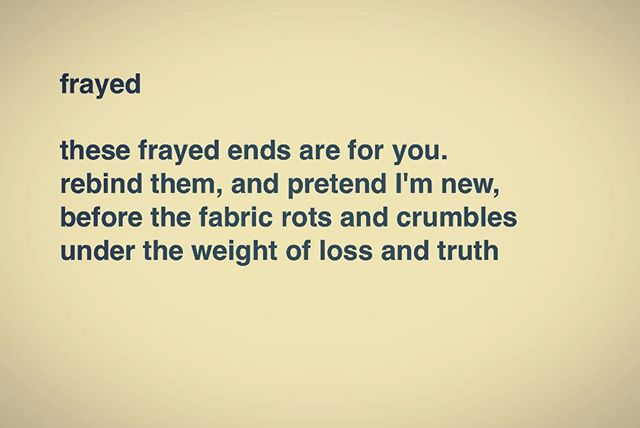 #frayed . . . . . #globalpoetcult #gpoets #gvillagepoetry #instapoem #instapoet #instapoetry #packpoetry #poem #poems #poet #poetrycommunity #poetryisnotdead #poetrypunch #poets #poetsofig #poetsofinstagram #spilledink #spokenword #thehallofpoetry #wordporn #writer #writers #writerscommunity #writersofig #writersofinstagram #writing #writingcommunity View on Instagram https://ift.tt/2YMeRBR